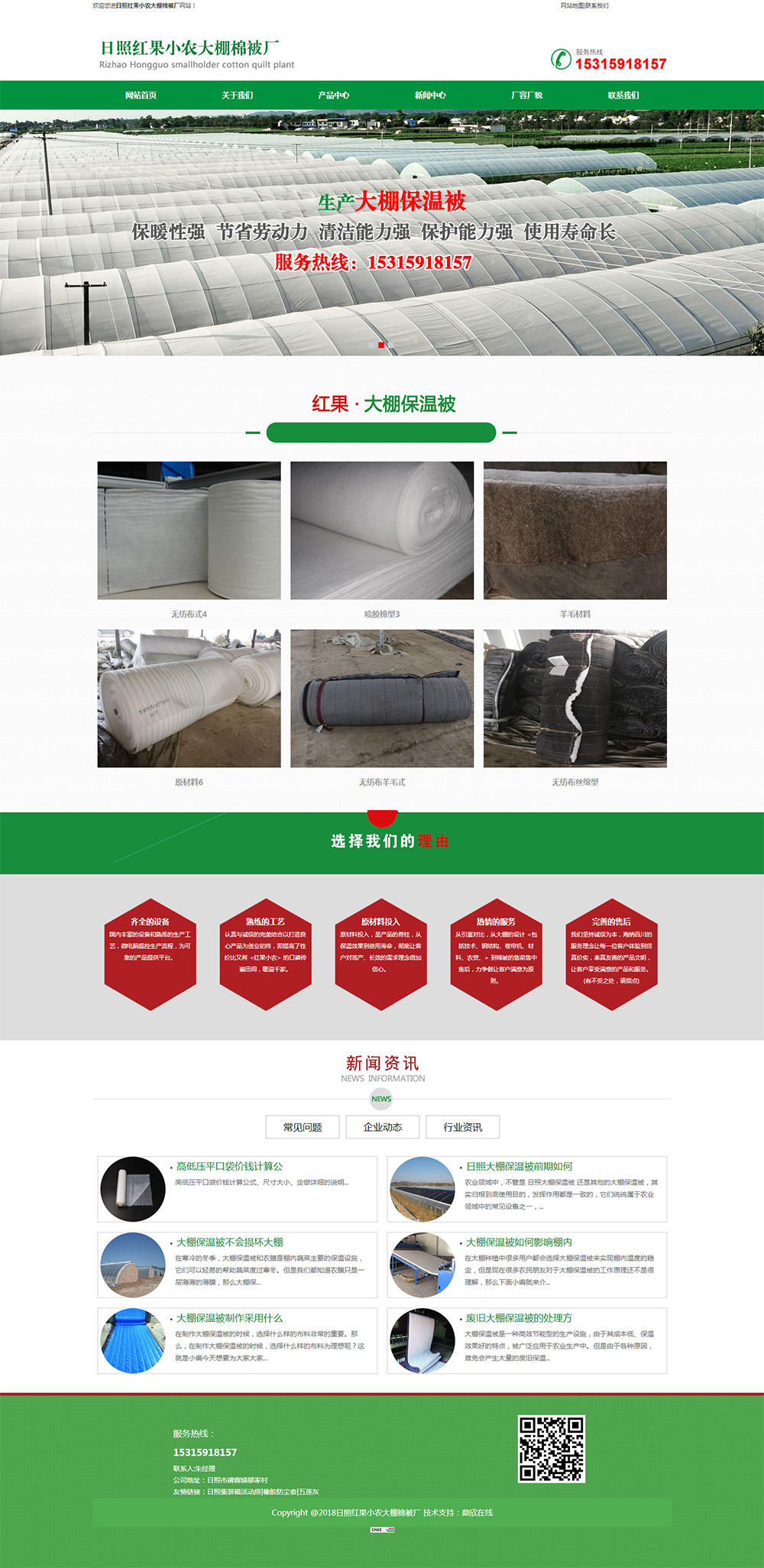 山東省日照市紅果小農(nóng)大棚棉被廠,開發(fā)于三農(nóng)一線,以市場需要為創(chuàng)業(yè)理念,借鑒于蔬菜之鄉(xiāng)壽光等地之三農(nóng)高科和省市級勞模以及各工業(yè)區(qū)精英,學(xué)習(xí)人之長,改善己之短,抱著長遠(yuǎn)心態(tài)與全體工作人員一體合力,不斷升華產(chǎn)品質(zhì)量。讓客戶滿意才能實(shí)現(xiàn)我們的創(chuàng)造價(jià)值,才能在同行業(yè)具備競爭力,并加以完善售后服務(wù),讓客戶無后顧之憂。