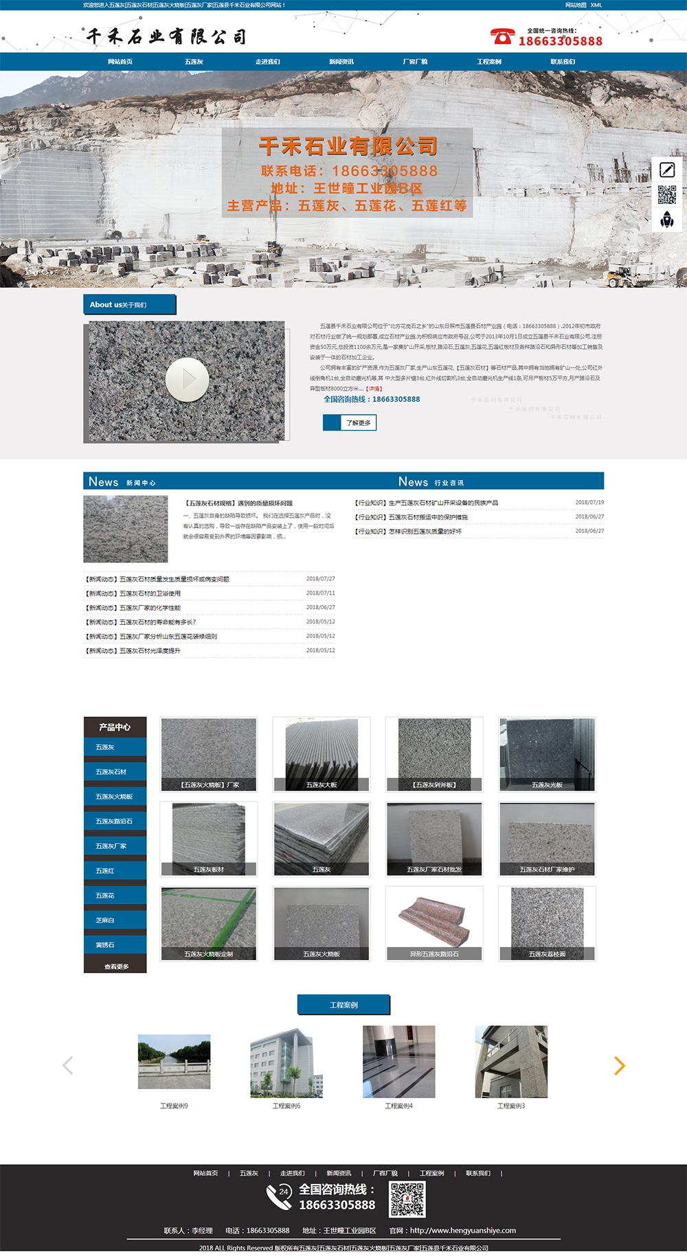 • 五蓮縣千禾石業(yè)有限公司位于"北方花崗石之鄉(xiāng)"的山東日照市五蓮縣石材產(chǎn)業(yè)園(電話:18663305888).2012年初市政府對(duì)石材行業(yè)做了統(tǒng)一規(guī)劃部署,成立石材產(chǎn)業(yè)園.為積極響應(yīng)市政府號(hào)召,公司于2013年10月1日成立五蓮縣千禾石業(yè)有限公司.注冊(cè)資金50萬(wàn)元,總投資1100余萬(wàn)元,是一家集礦山開(kāi)采,板材,路沿石,五蓮灰,五蓮花,五蓮紅板材及各種路沿石和異形石材等加工銷售及安裝于一體的石材加工企業(yè).